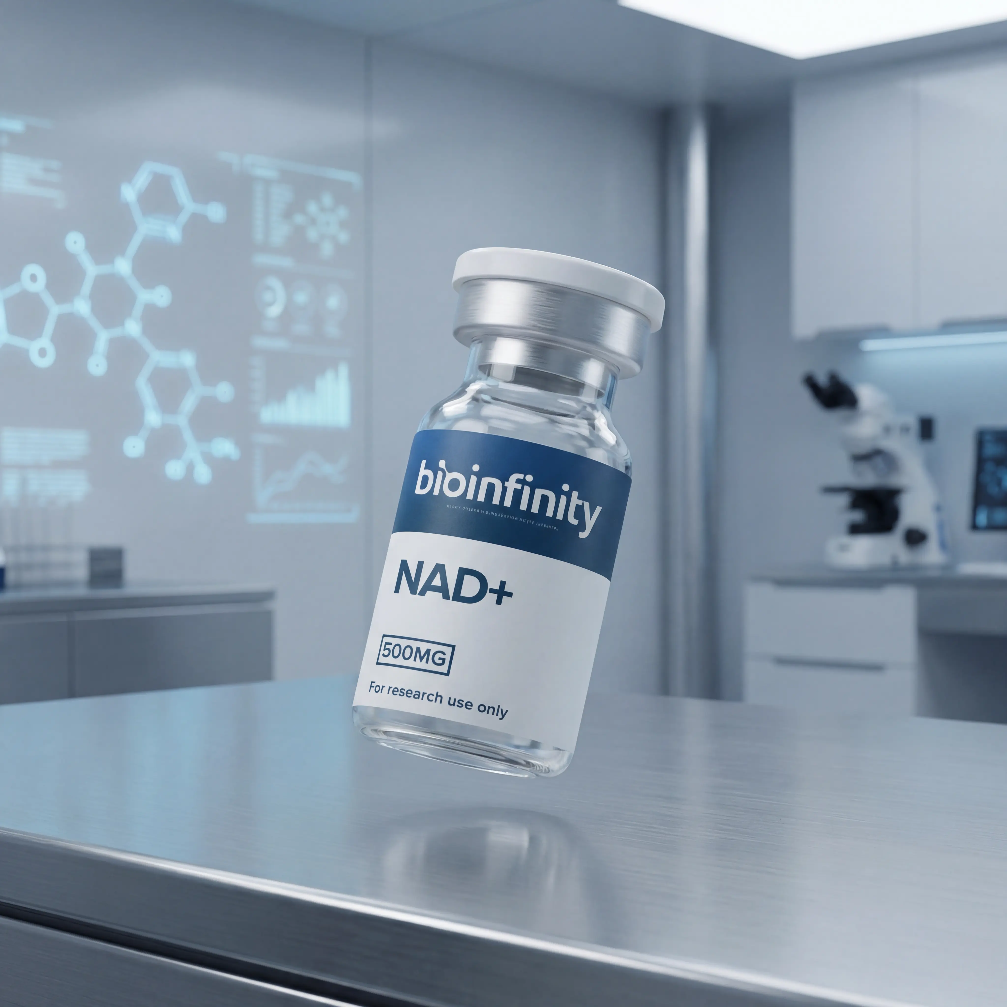 NAD+ (Nicotinamide Adenine Dinucleotide) is a critical coenzyme present in every living cell, functioning as an essential electron carrier in mitochondrial oxidative phosphorylation and as a substrate for NAD+-consuming enzymes including sirtuins (SIRT1-7), PARPs, and CD38. NAD+ levels decline significantly with age, making it a central focus of longevity research.